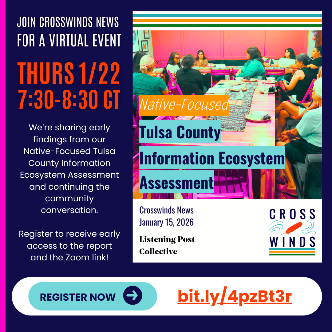 Over the past year, Crosswinds News has spent time listening to Native communities across northeast Oklahoma, including multiple stops in Tulsa County, to better understand how people access information and what’s missing from the local news landscape.